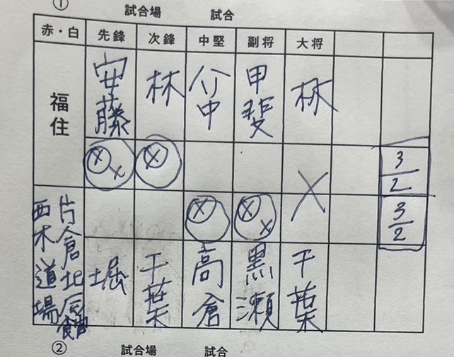 やはり強豪。中堅から取り返されてしまいました。